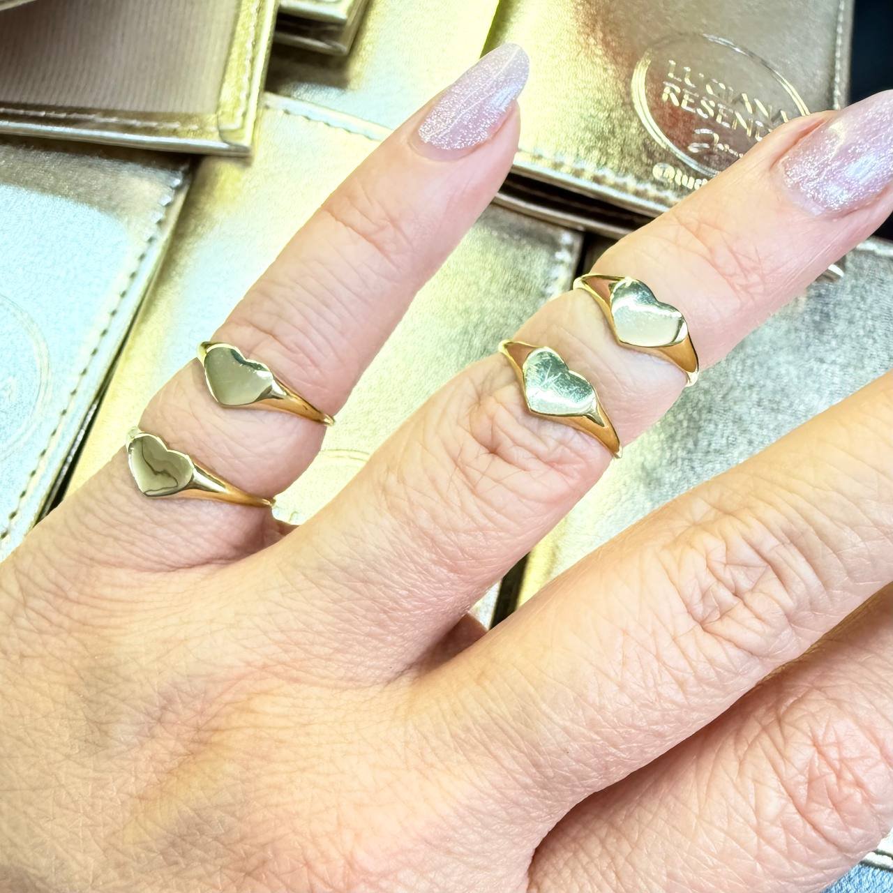 Anel de Coração espelhado 8x6mm, dedo mindinho, 1,1gr no ouro amarelo 18 K.