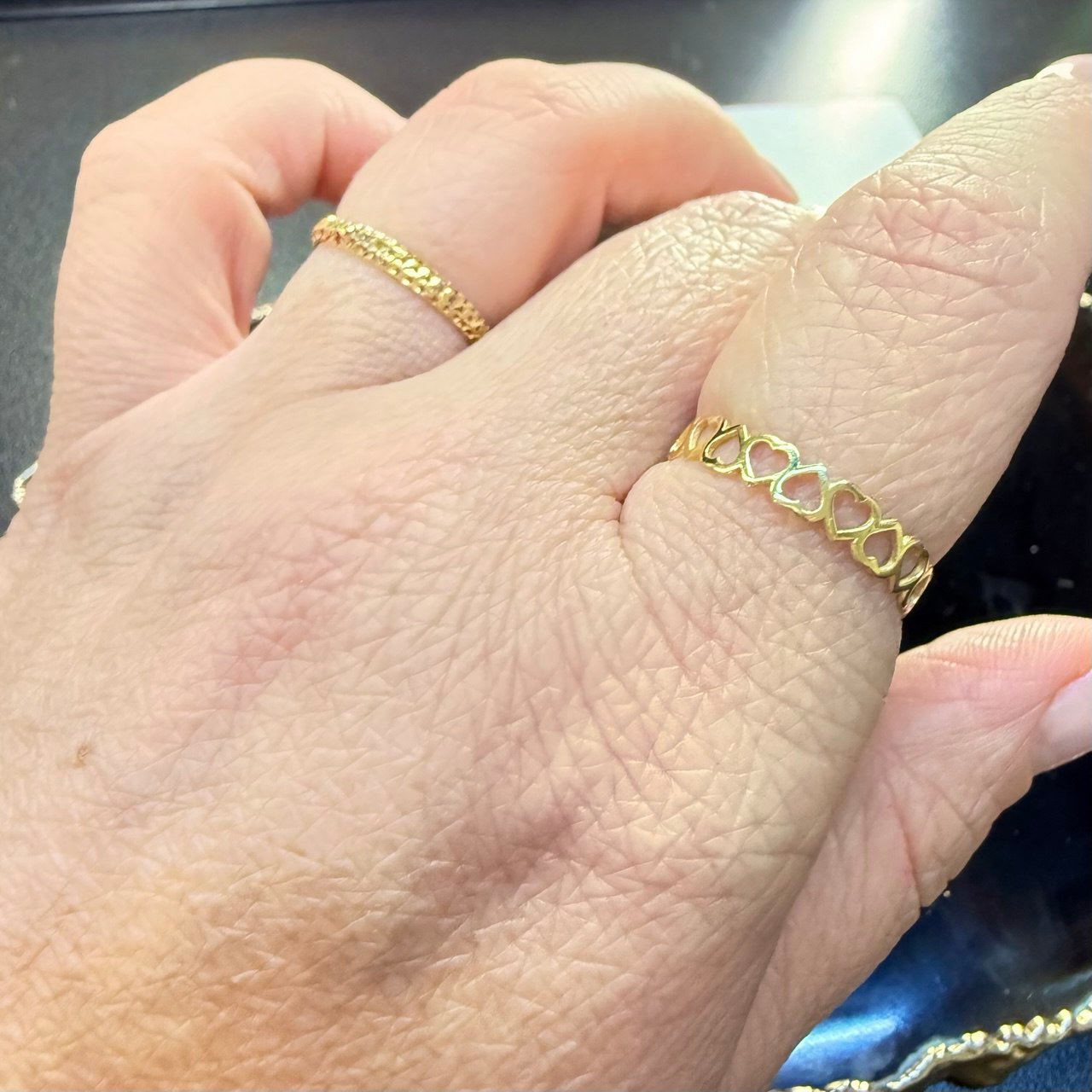 Anel de Corações Vazados no Ouro Amarelo 18K