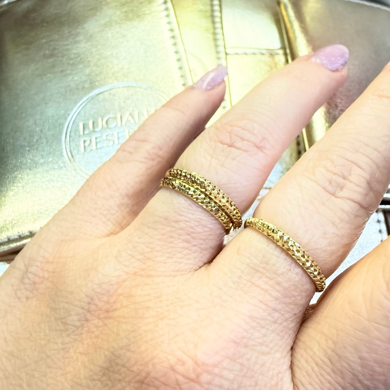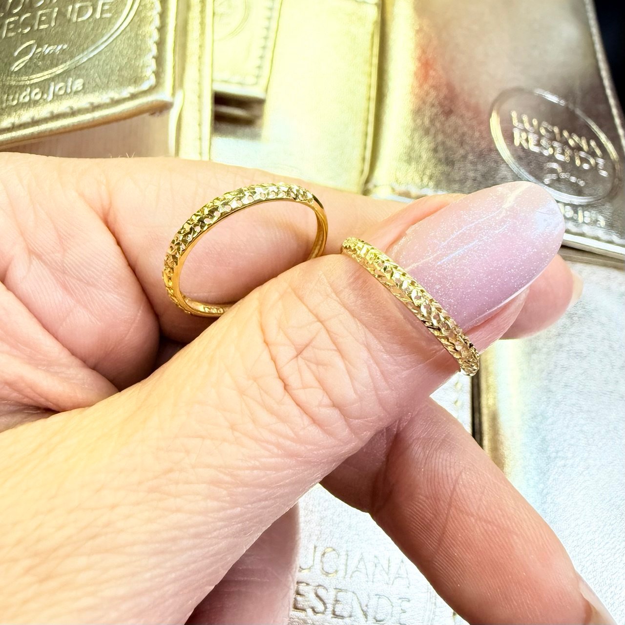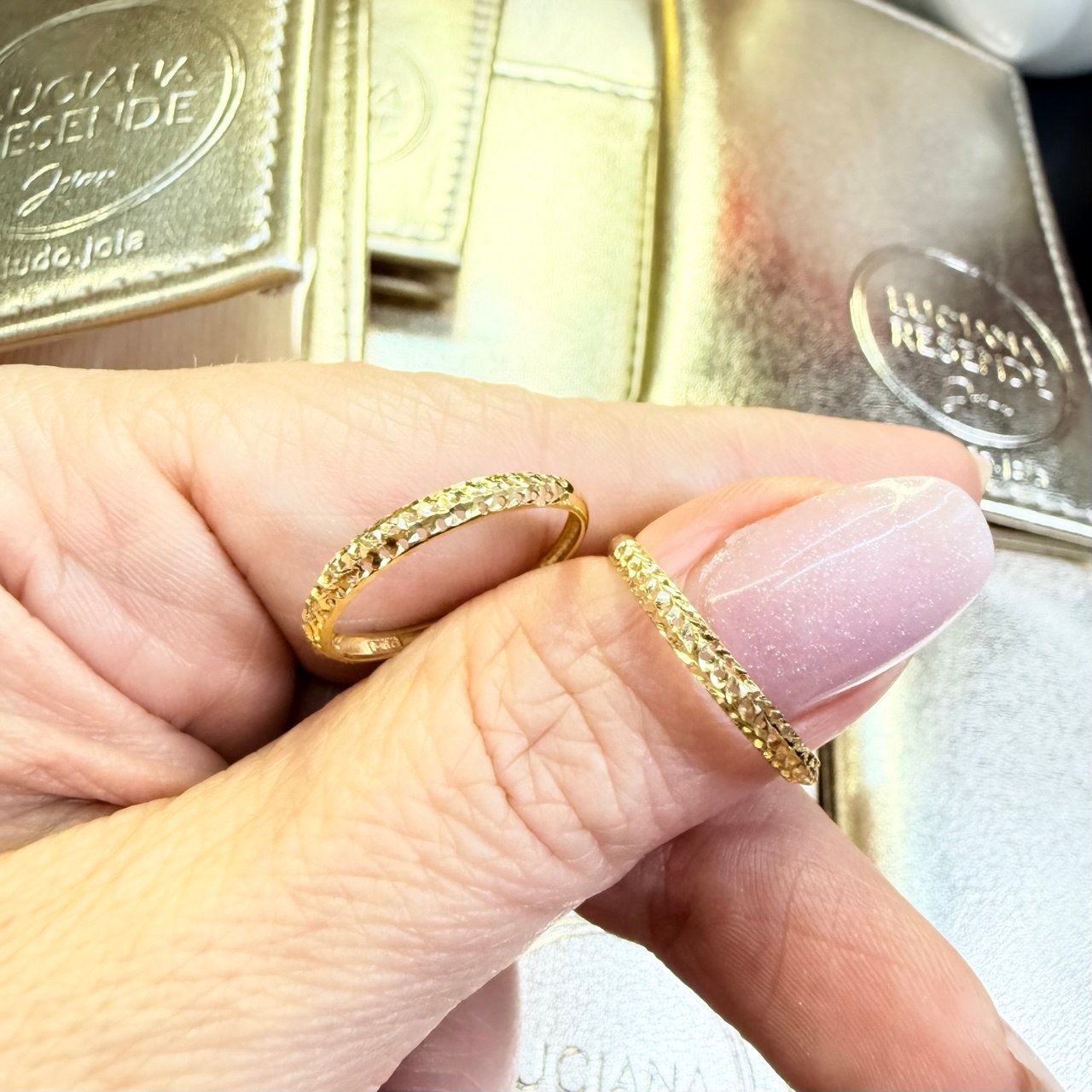 Anel Diamantado fininho, no ouro amarelo 18K, modelo atual e discreto, aceita inúmeras composições de anéis ou até mesmo sozinho!