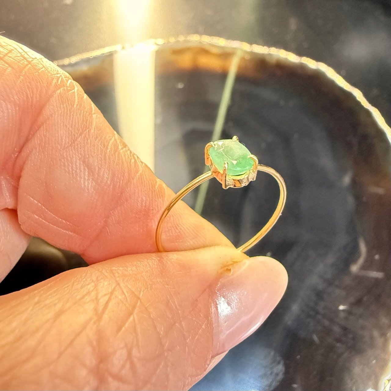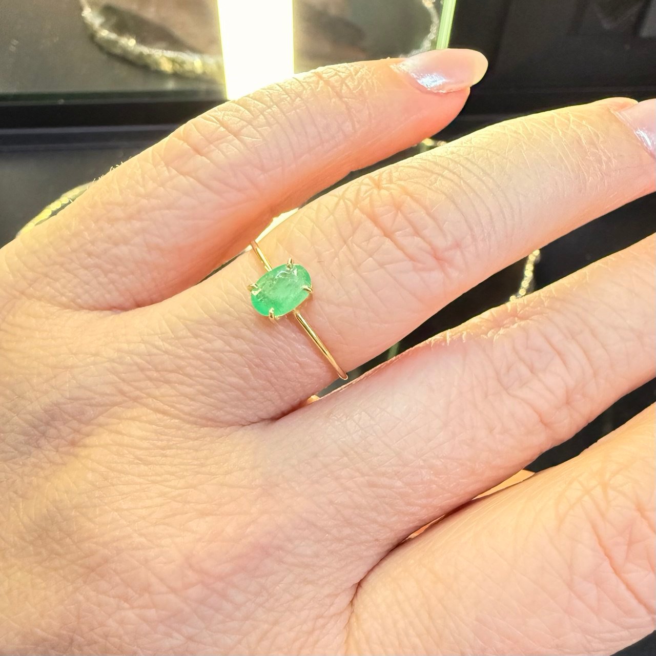 Anel Esmeralda natural 6x4mm, no ouro amarelo 18K.