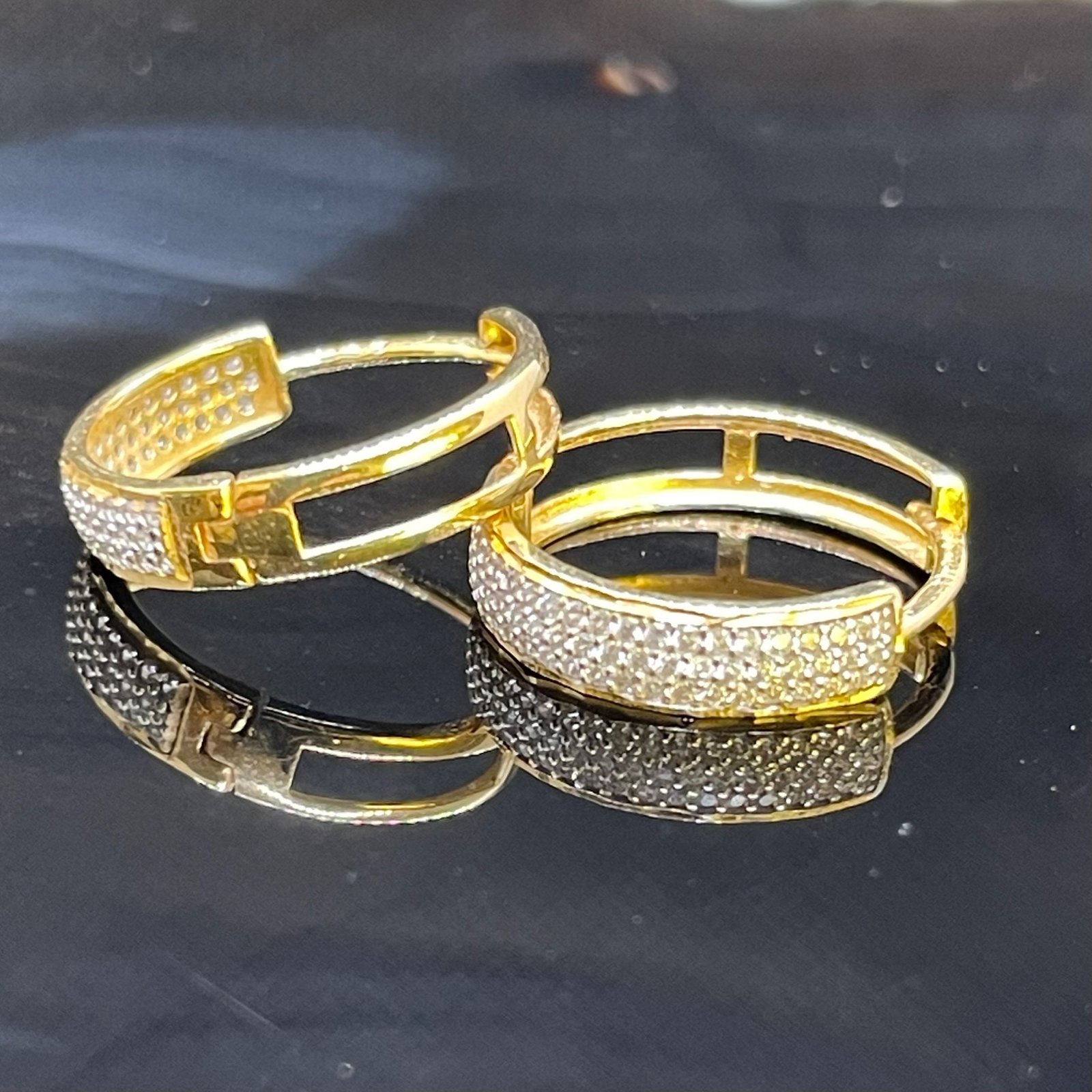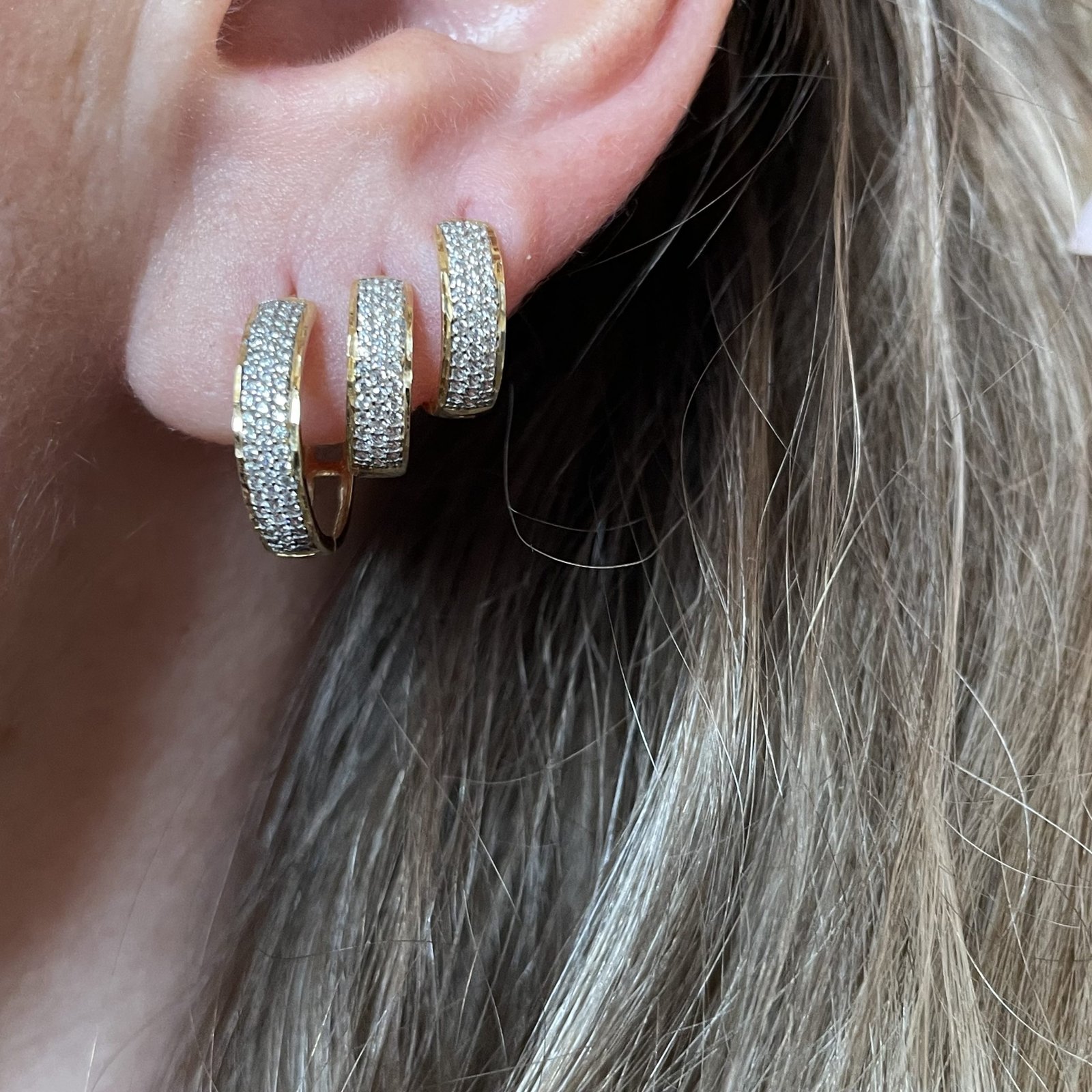 Par de argolas cravejadas de zircônias brancas 1,5cm, no ouro amarelo, 18K.