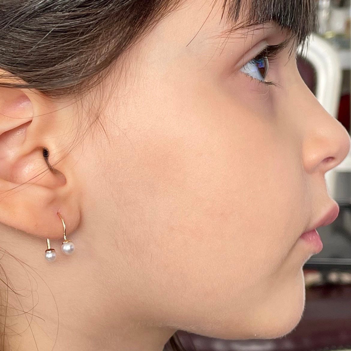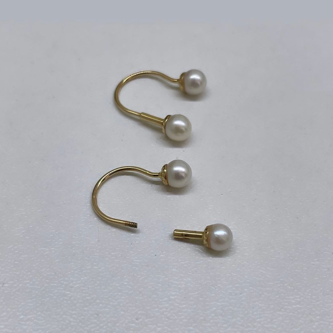 Brinco Anzol com Pérolas e fecho em rosca, no ouro amarelo 18K