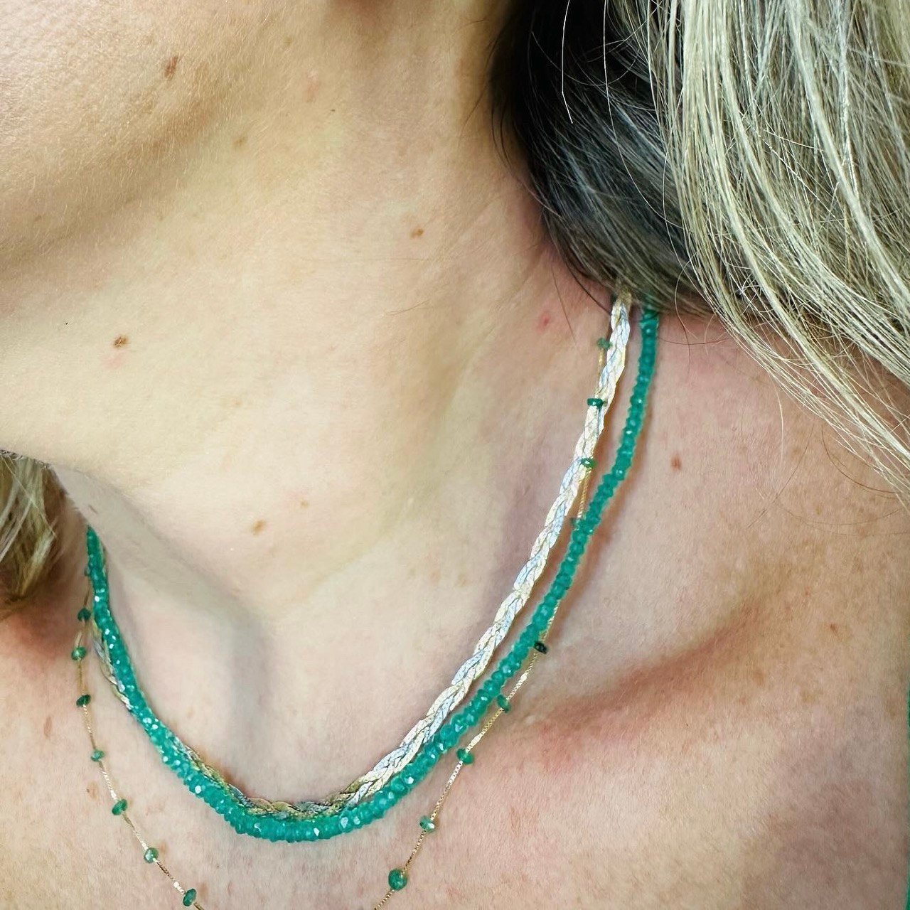 Colar de Ônix Verdes Naturais Fecho no Ouro Amarelo 18k