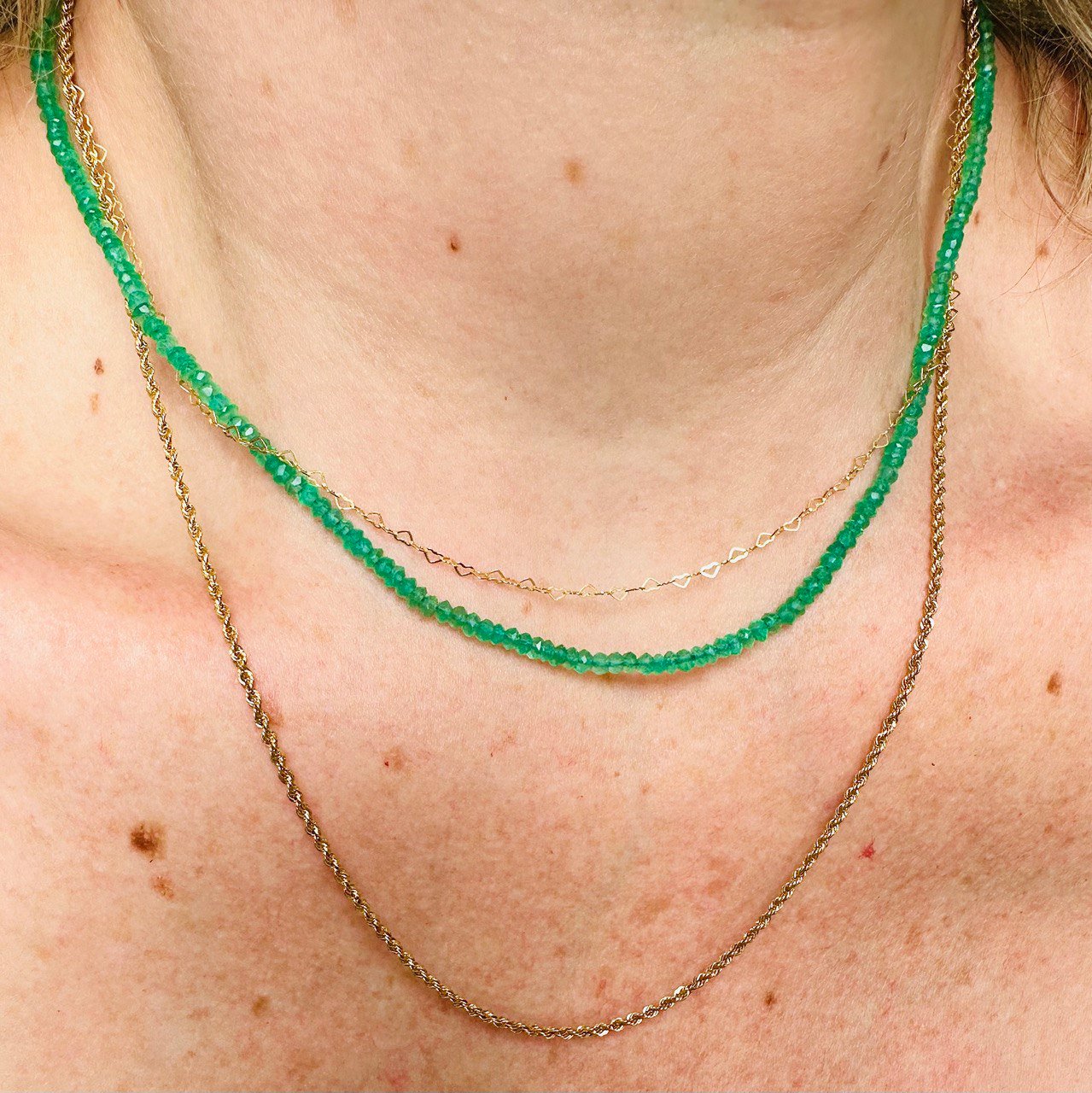 Colar de Ônix Verdes Naturais, 42cm com fecho no Ouro Amarelo 18k