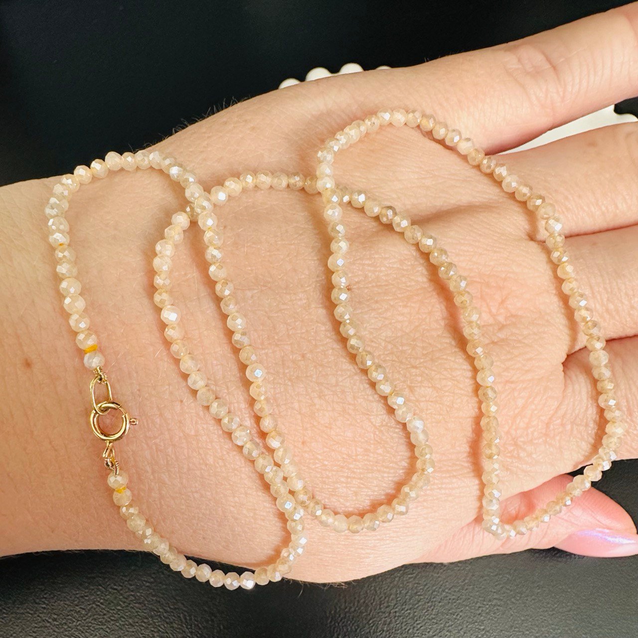 Colar Safiras Bege Naturais, 50cm, com Fecho no Ouro Amarelo 18K