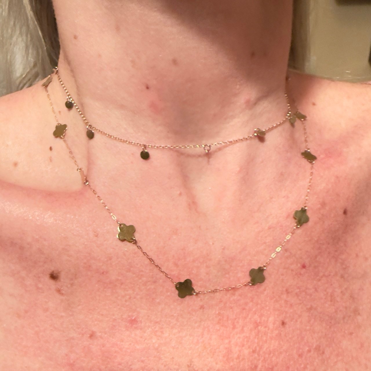 Gargantilha 13 Trevos espelhados, 45cm, elo redutor no 40, no ouro amarelo 18K