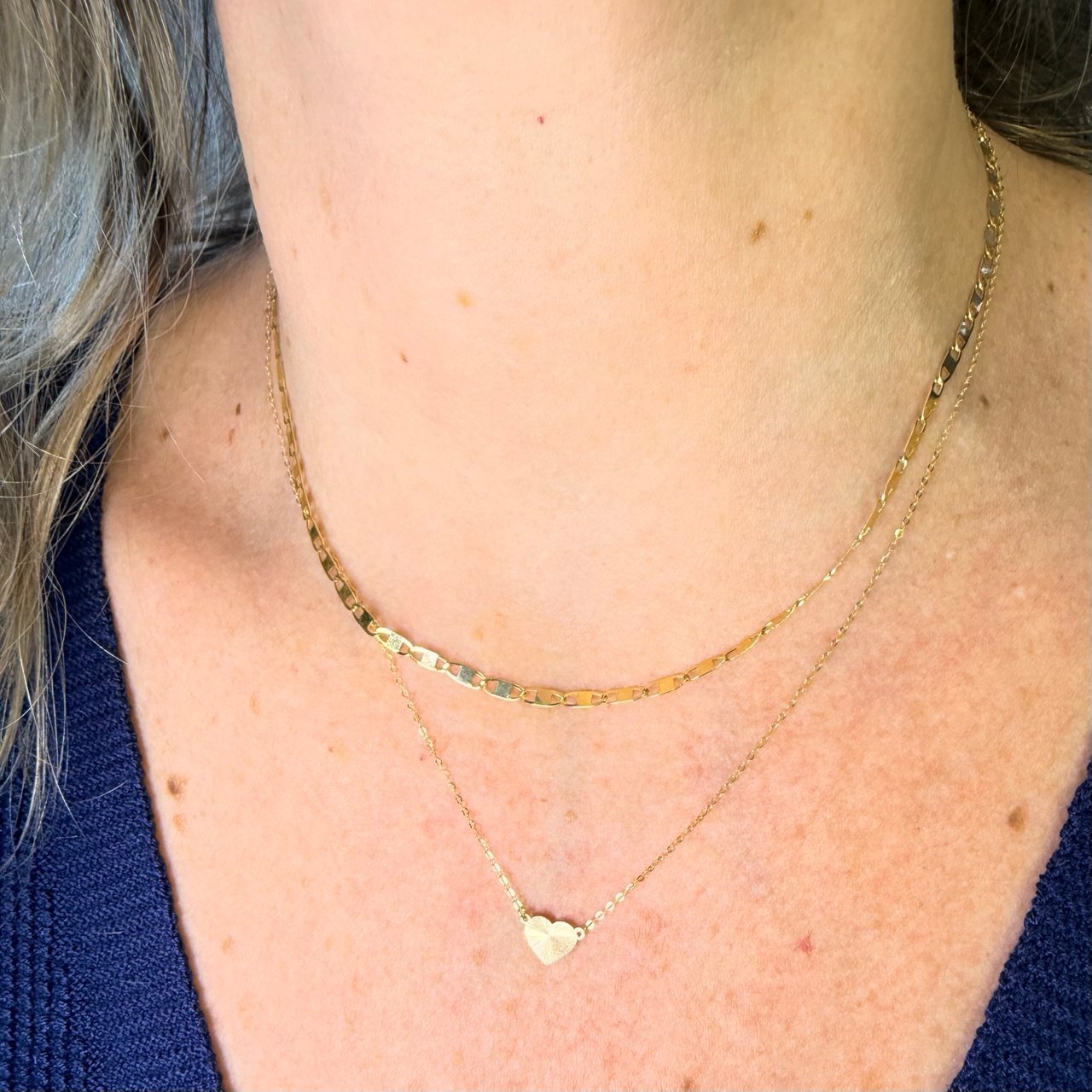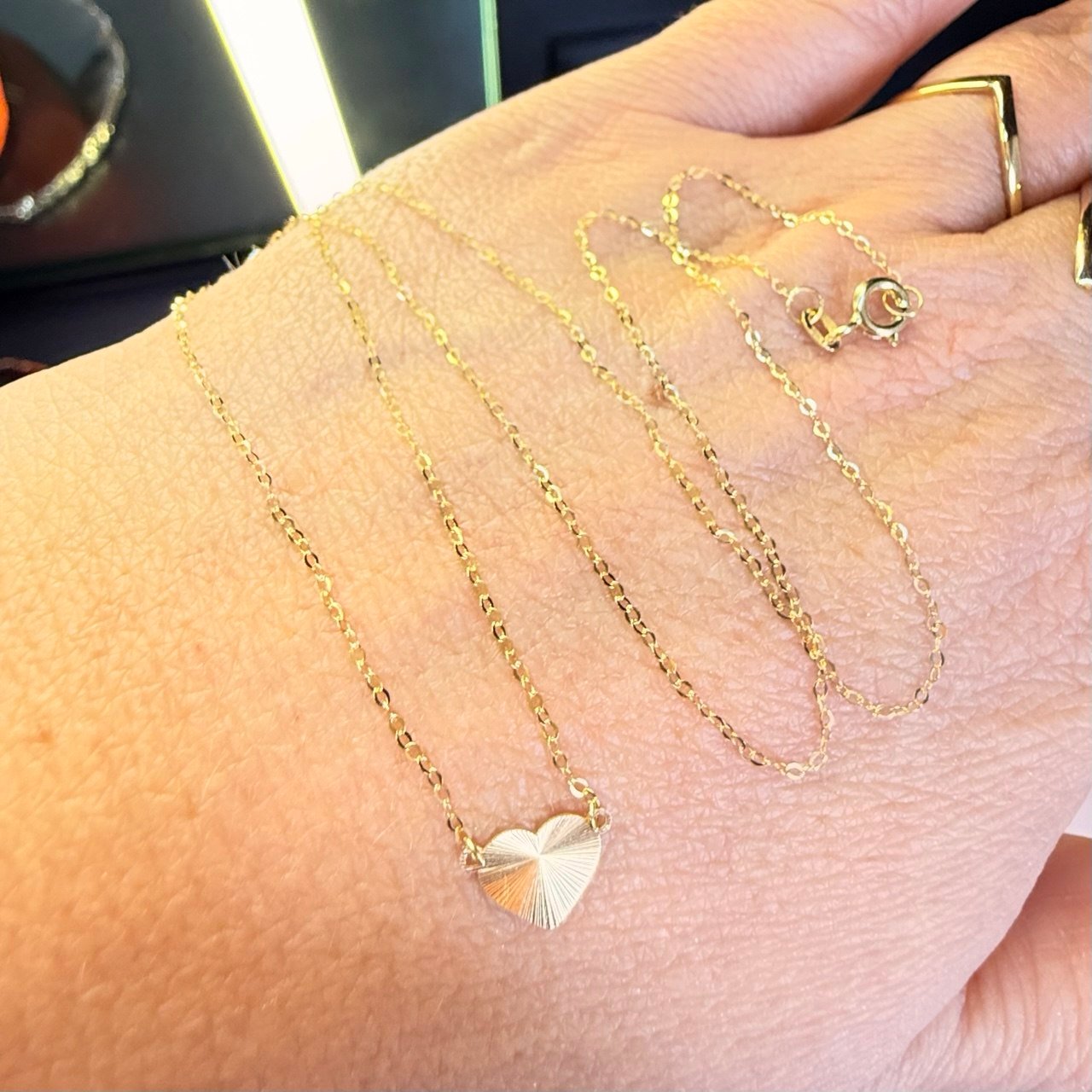 Gargantilha Coração diamantado dos 2 lados, 45cm, em ouro amarelo 18k.