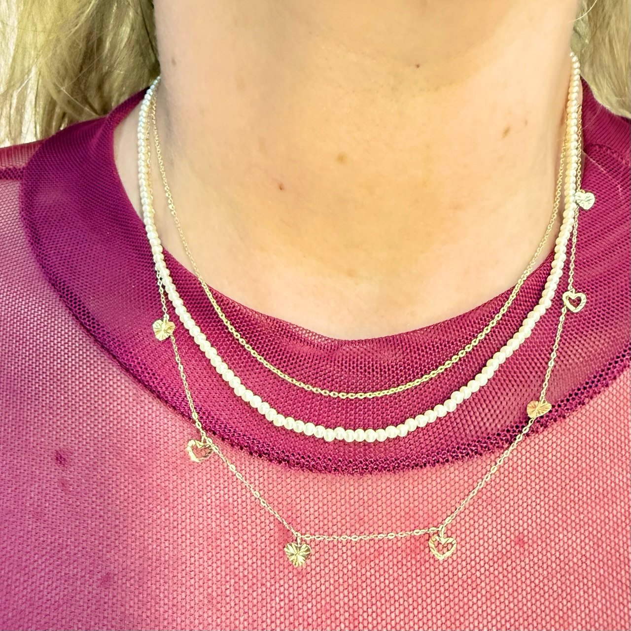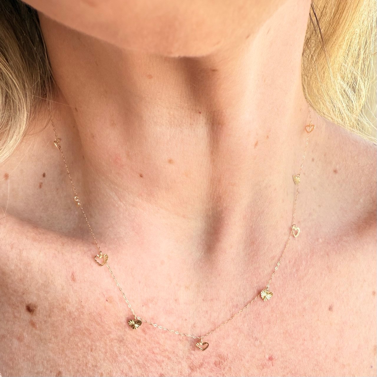 Gargantilha Corações Diamantados no Ouro Amarelo 18 K