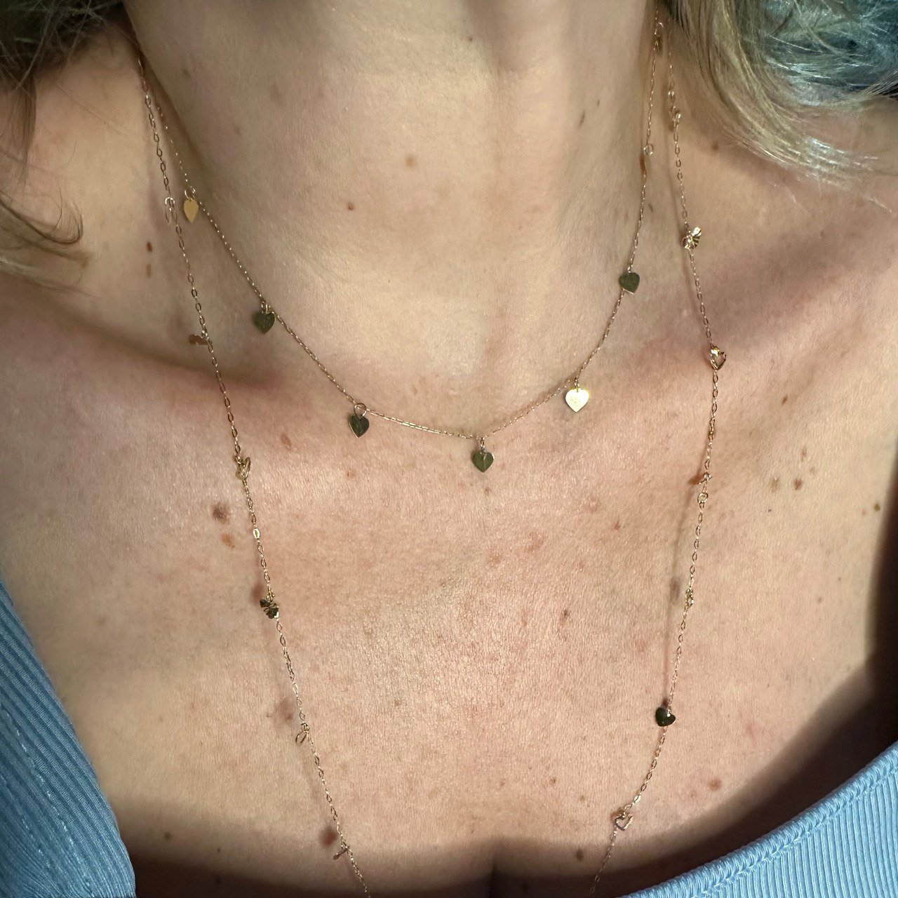 Gargantilha de Coraçõezinhos Espelhados, com 45cm e elo redutor no 40, em Ouro Amarelo 18K