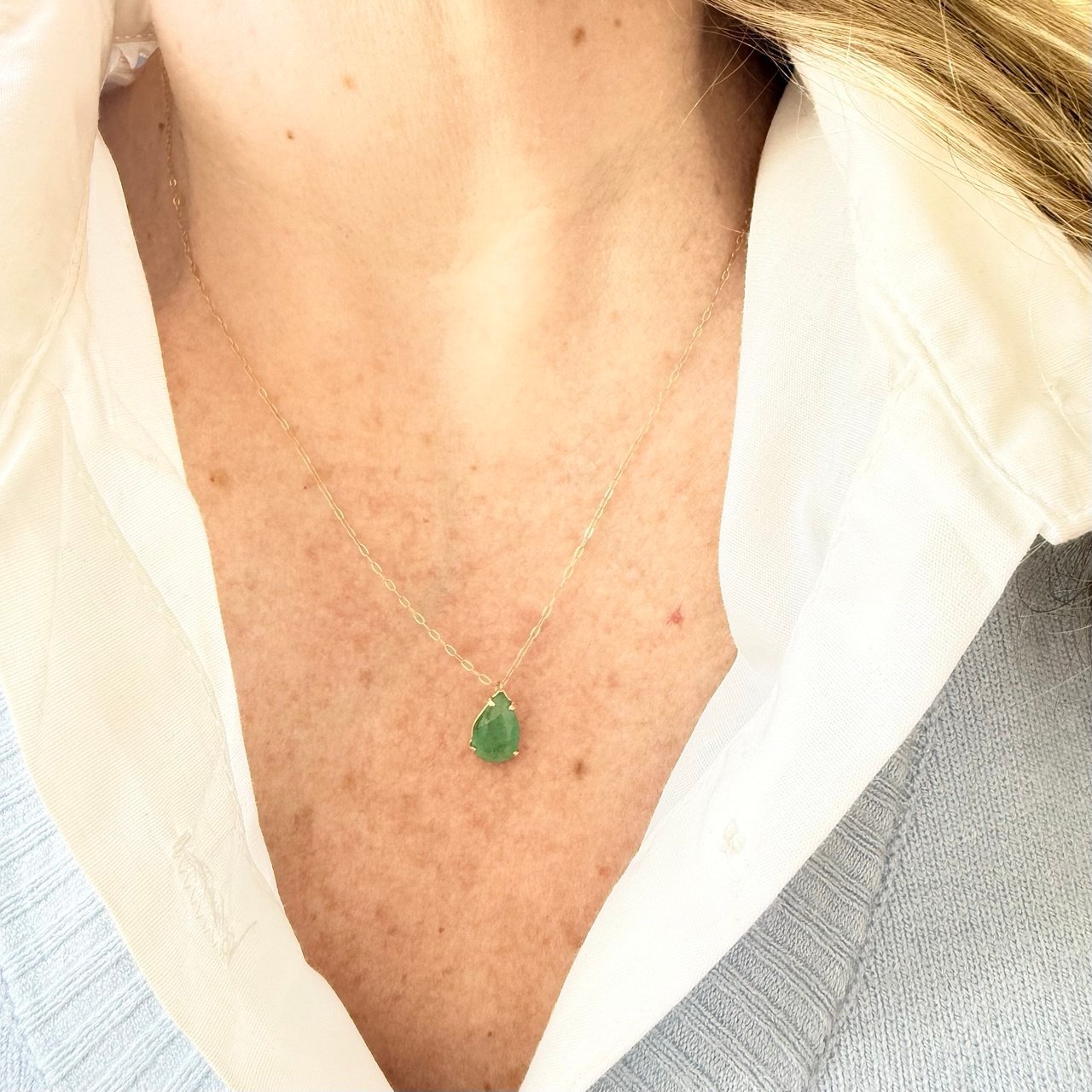 Gargantilha Esmeralda Gota 10x 6,4mm, 45cm no Ouro 18K
