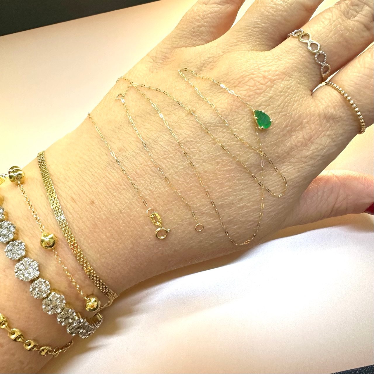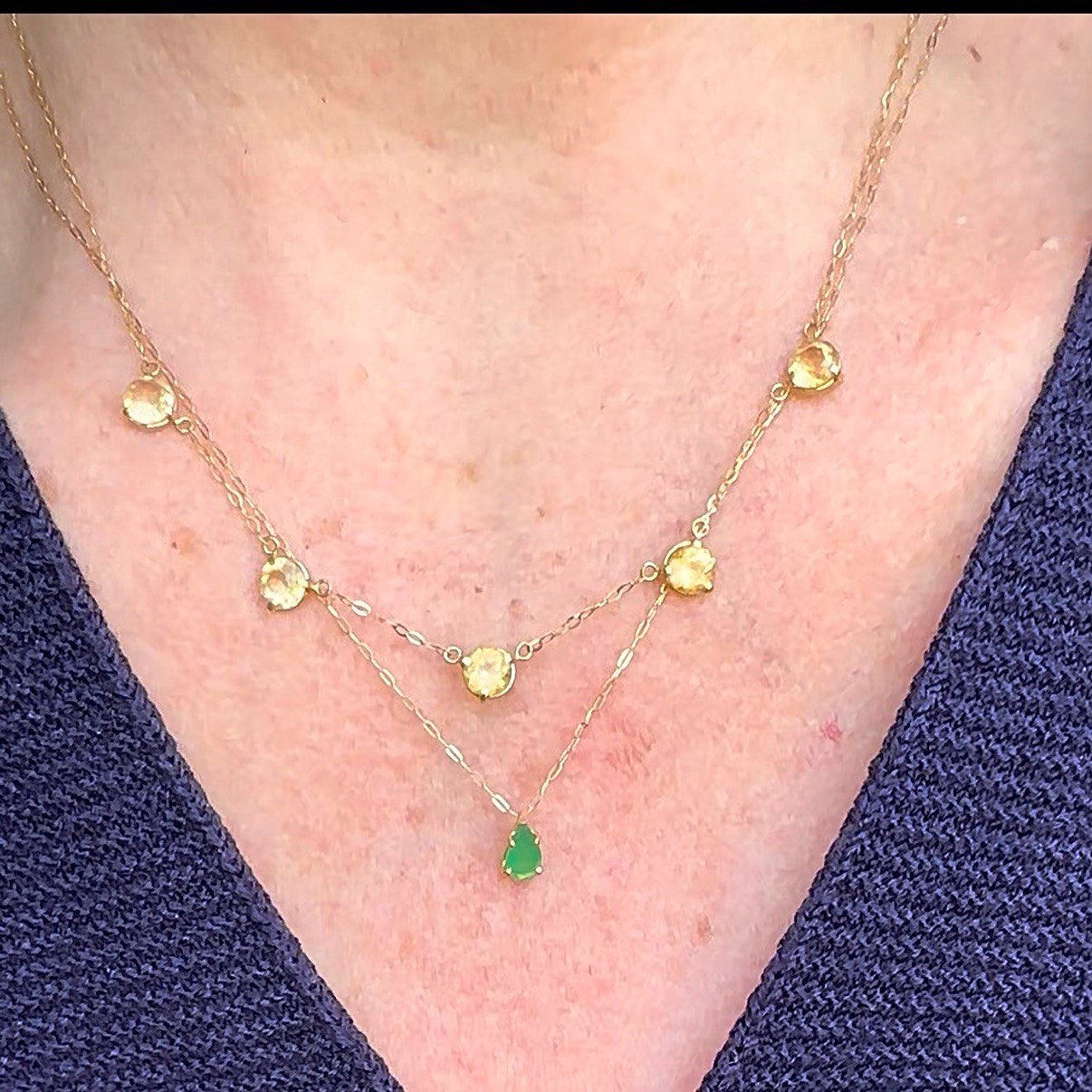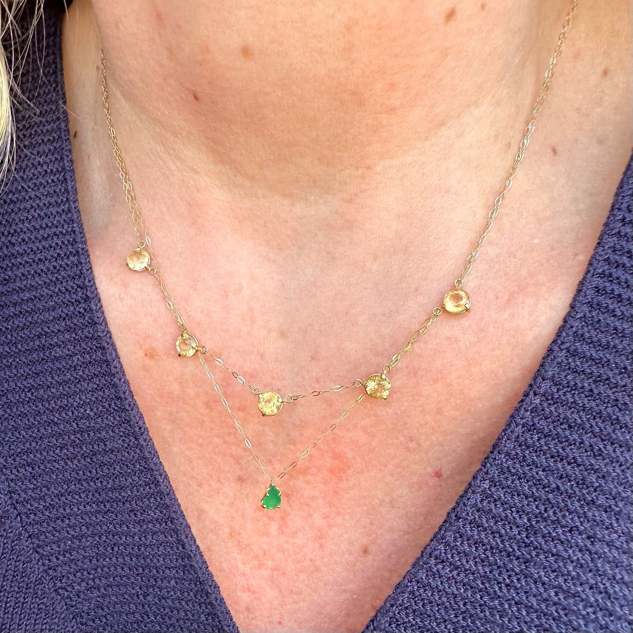 Gargantilha Esmeralda natural gota 6,5mm, 0,40ct, corrente 45cm com elo redutor, no ouro amarelo 18K.