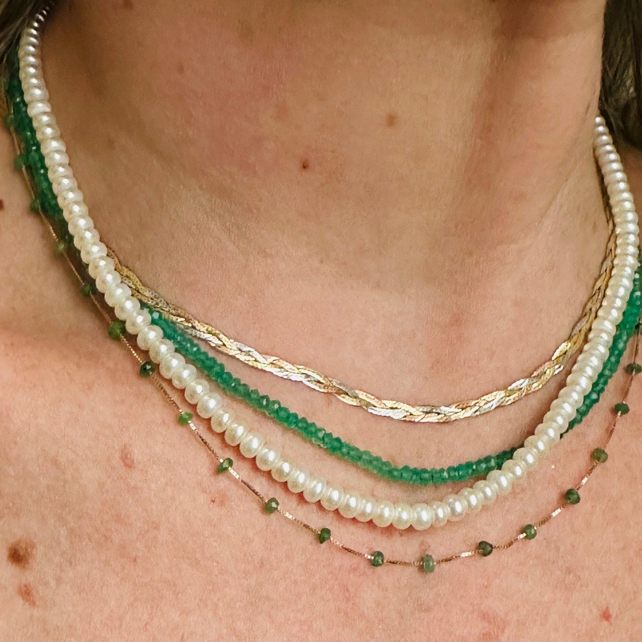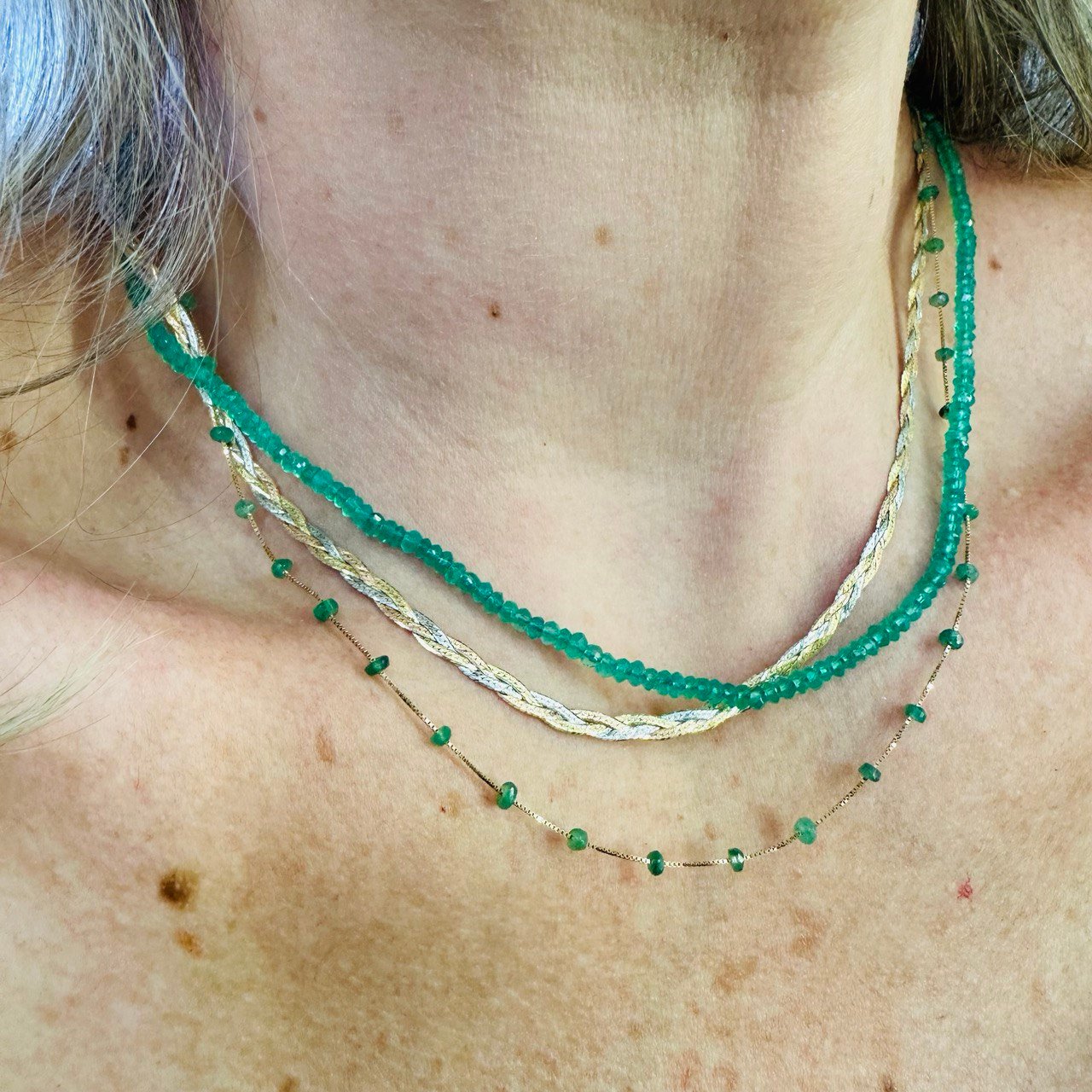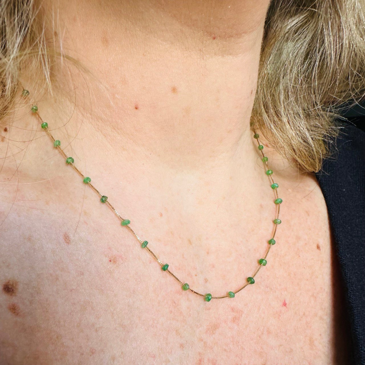 Gargantilha Esmeraldas na Corrente Veneziana 45cm, no Ouro Amarelo 18k
