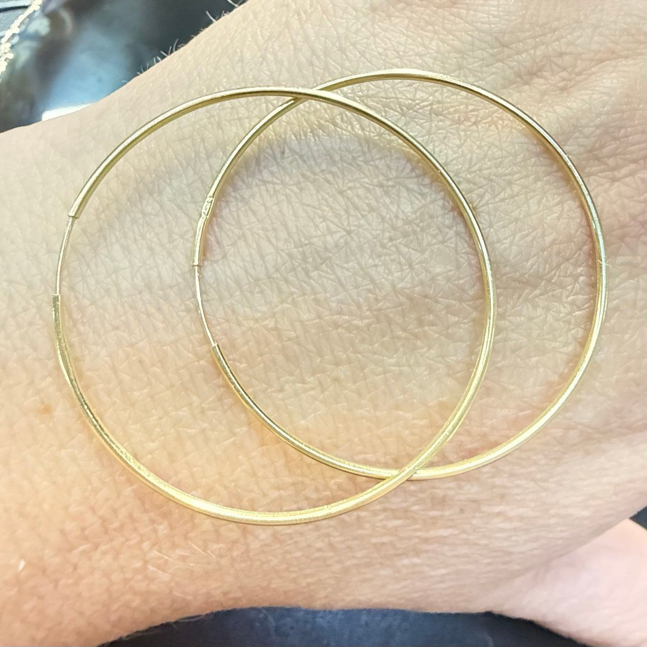 Par de Argola lisa, 4cm, fio redondo, 1,3gr, no ouro amarelo 18K.