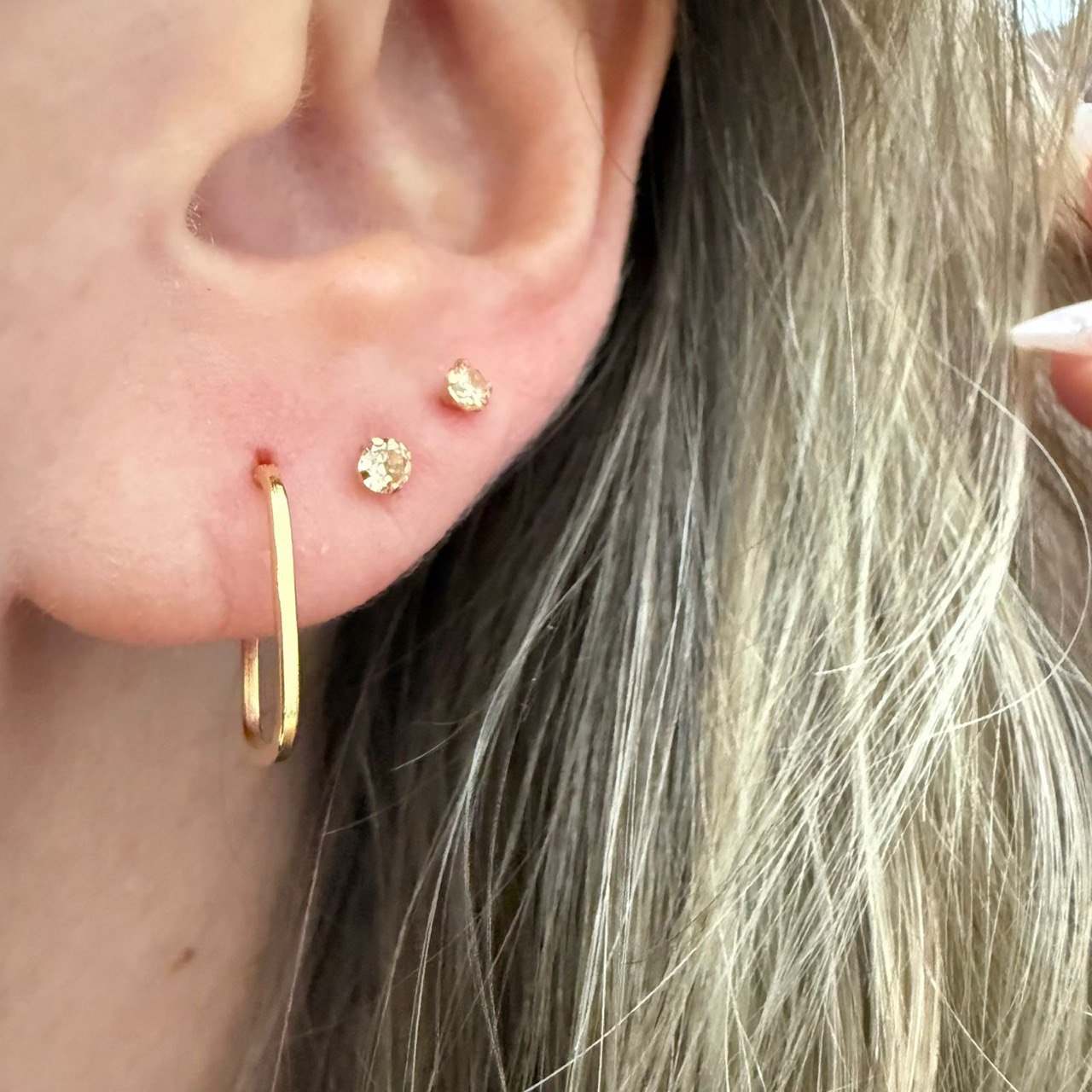 Na foto, a modelo usa estas argolas no segundo e no terceiro furos