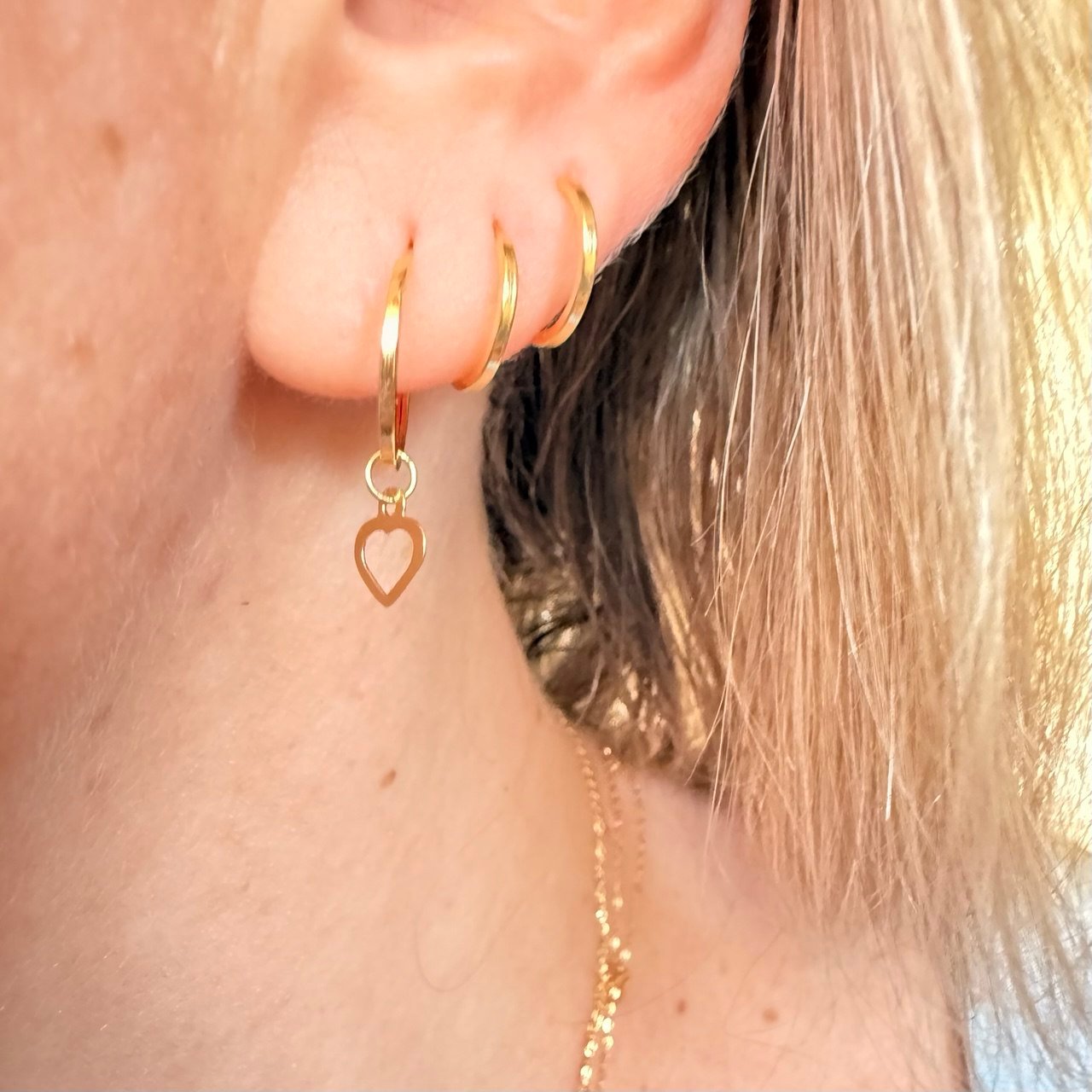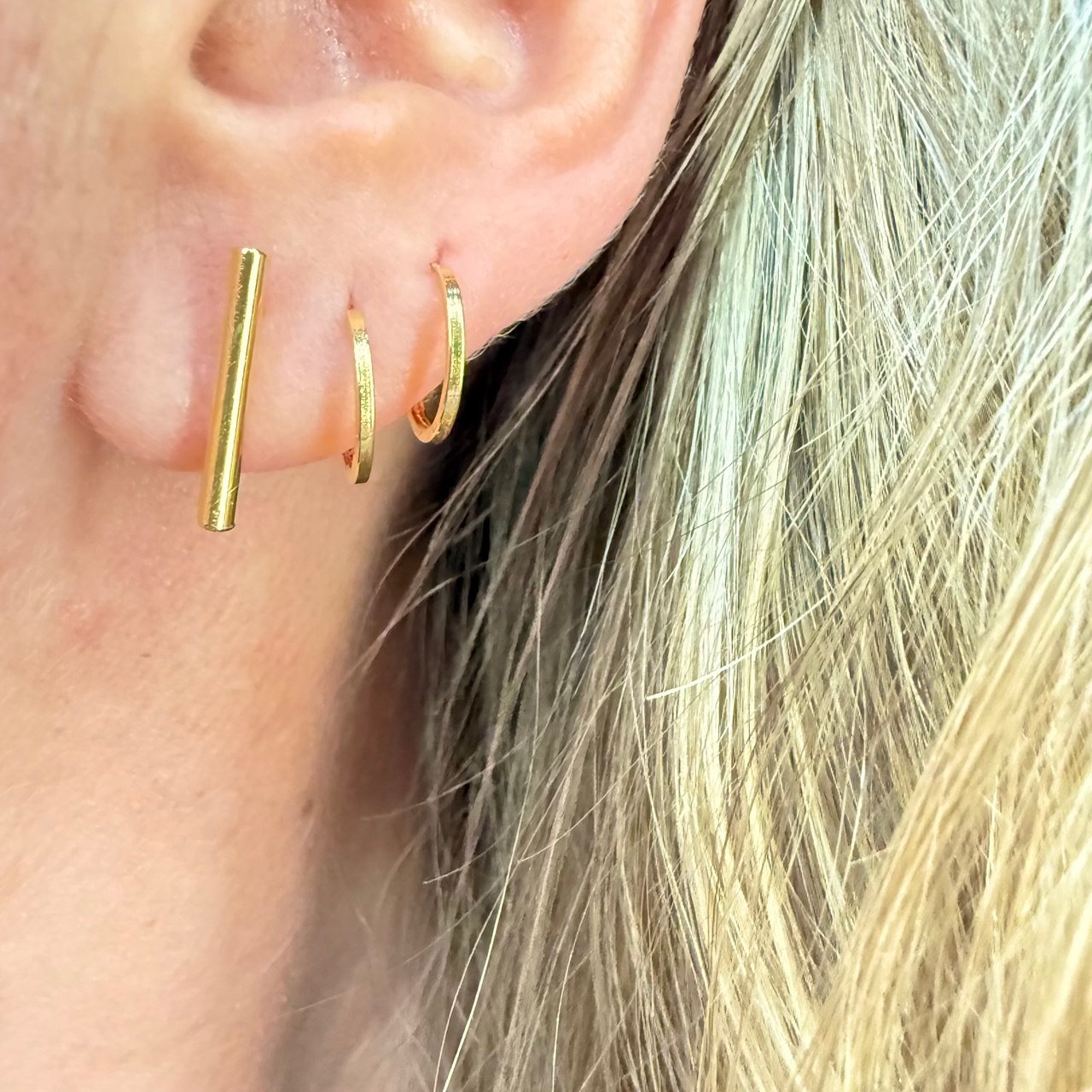 Par de Argolas lisa, ideal para segundo furo e infantil, fio quadrado, 10mm, no ouro amarelo 18k