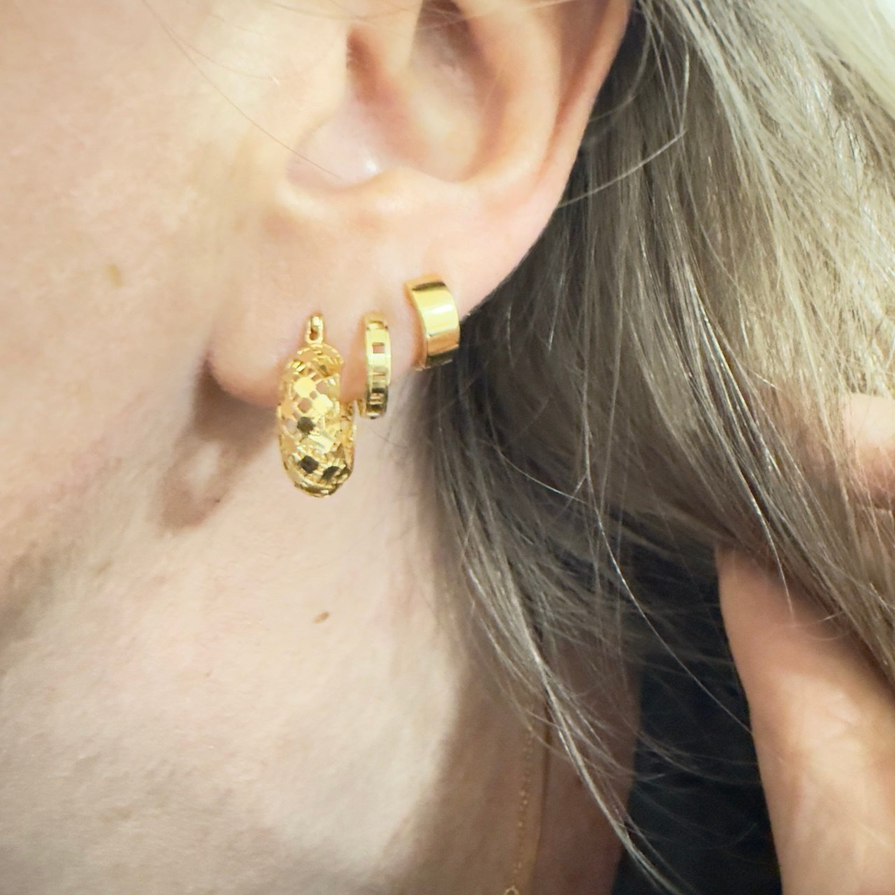 Par de Argolas 8mm, fio 3,8mm de espessura (mais grossinha), 1,8gr., ideal para segundo ou terceiro furo, lisa, fio quadrado, no ouro amarelo 18k