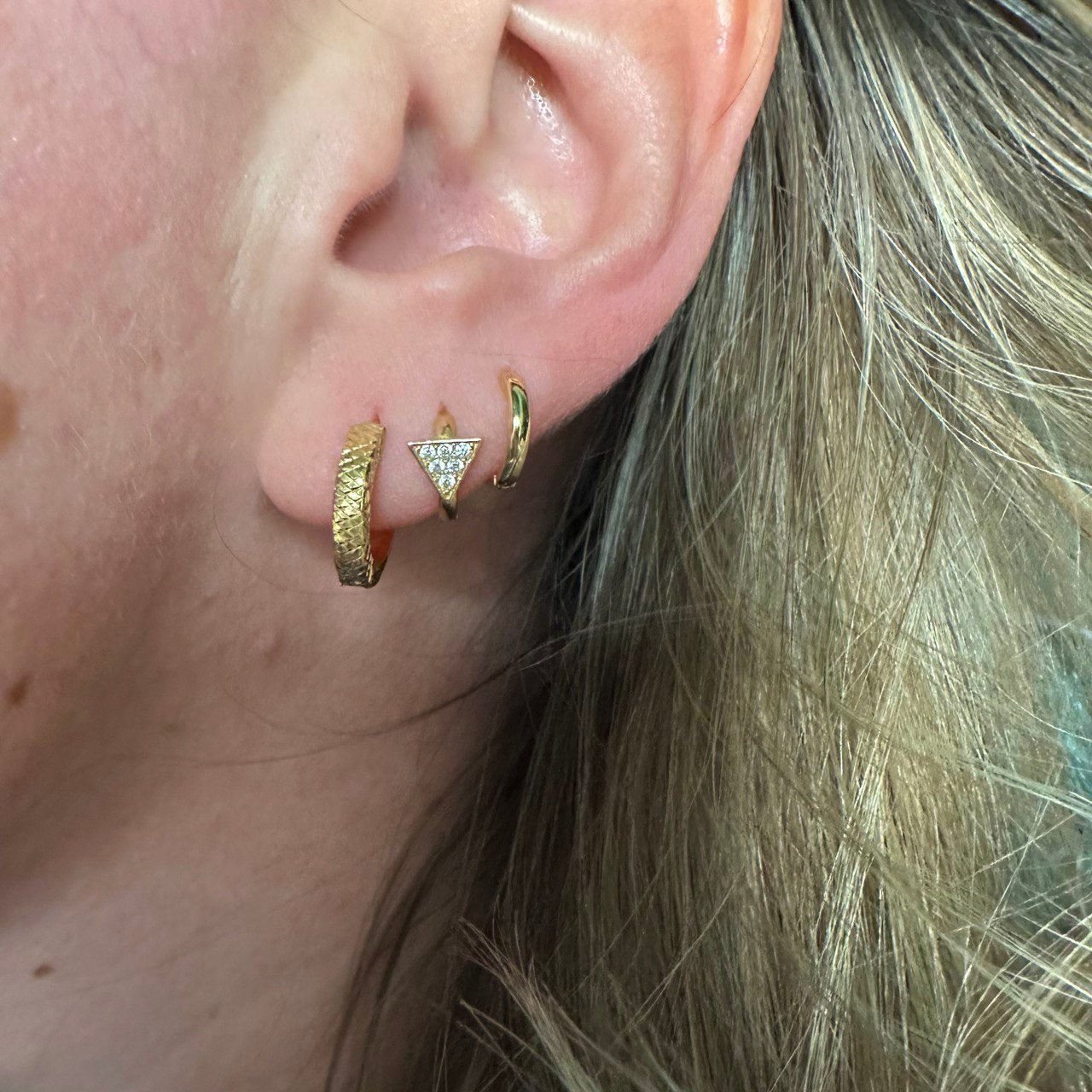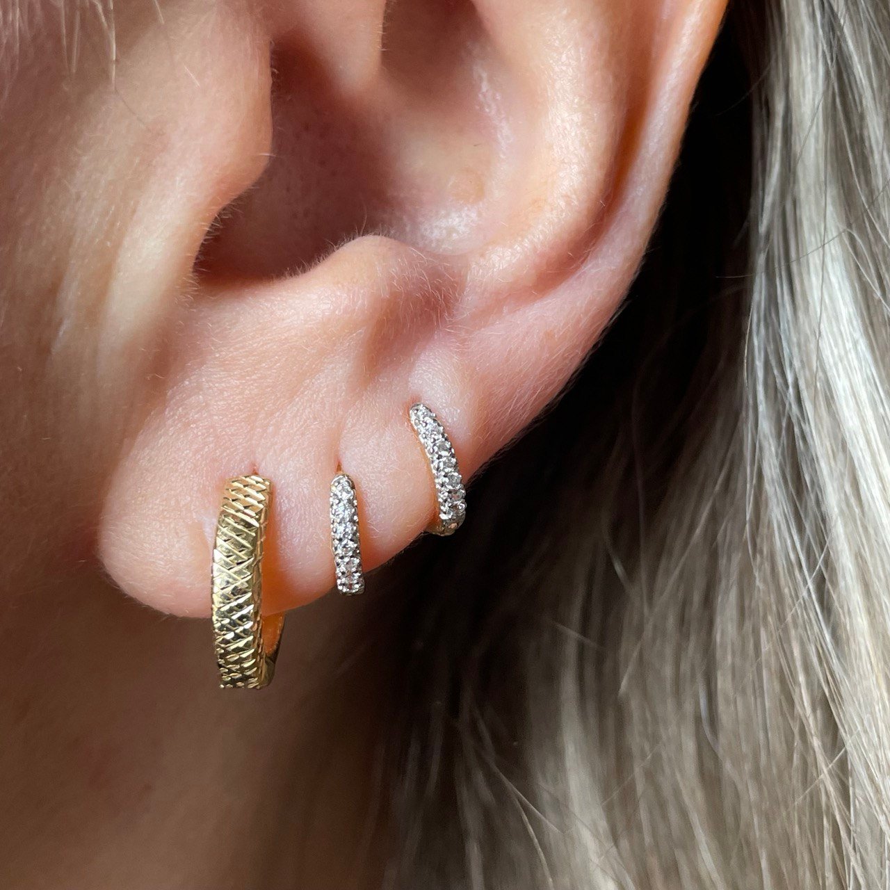 Par de Argolas Diamantadas 1,5cm, com 1,5gr, no Ouro Amarelo 18K