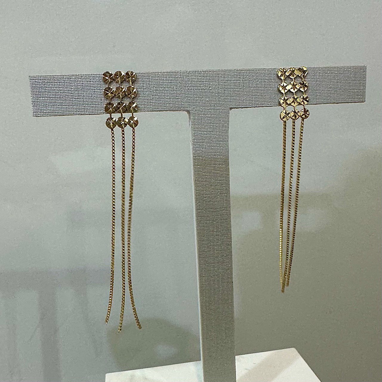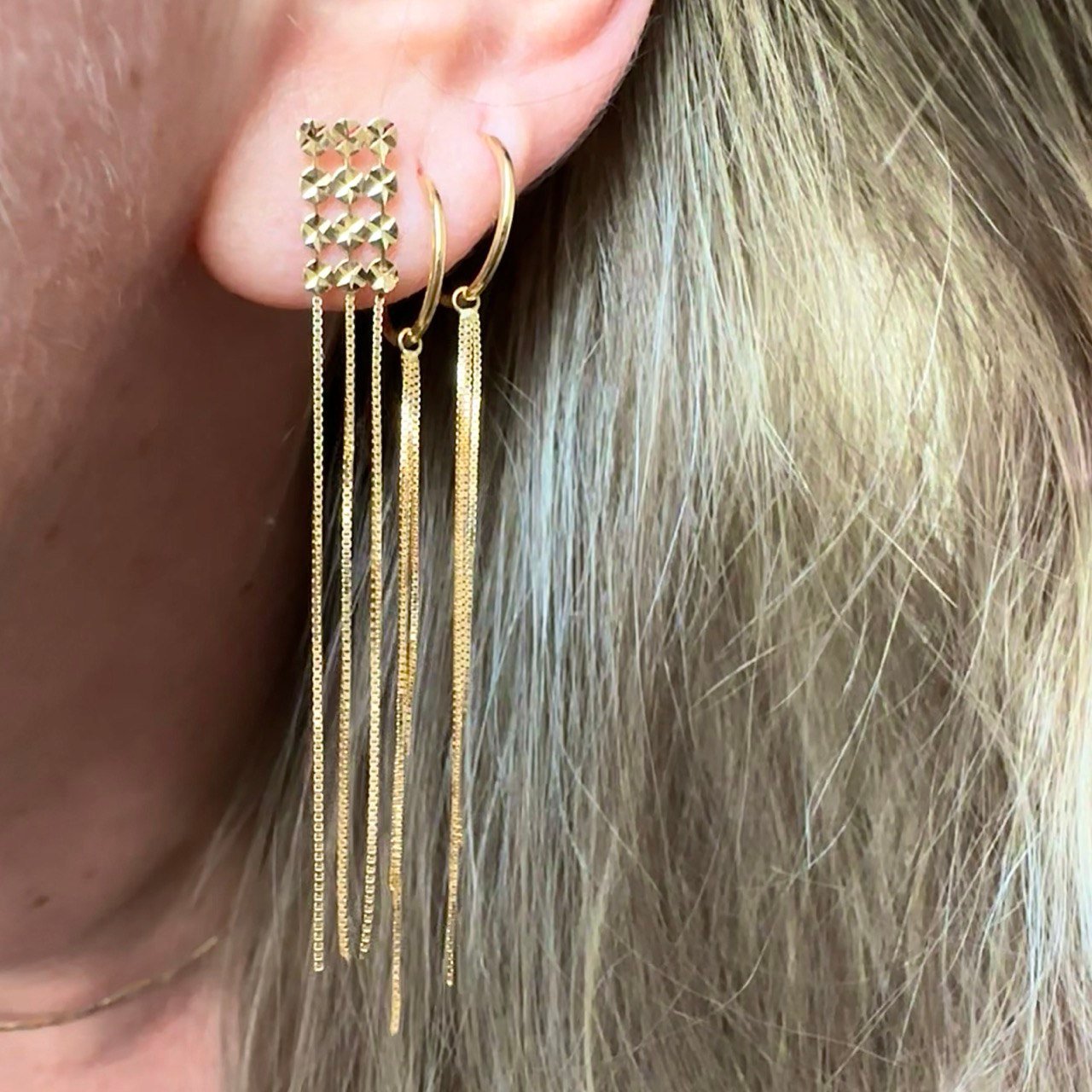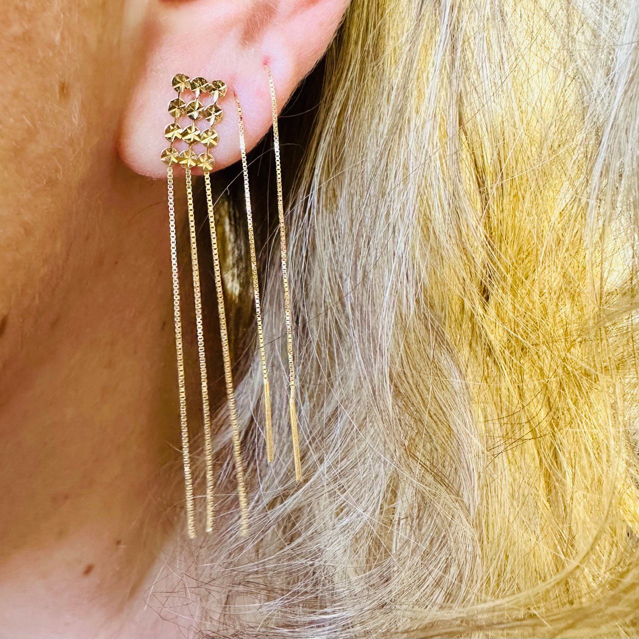 Par de brincos Círculos Diamantados e franjas no Ouro Amarelo 18k