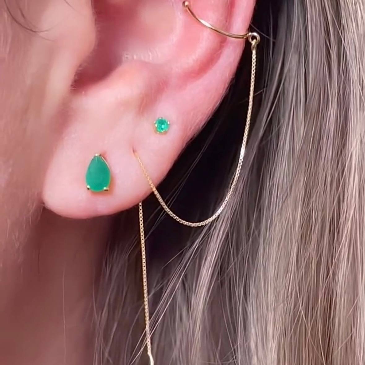 Par de Brincos Esmeralda Gota