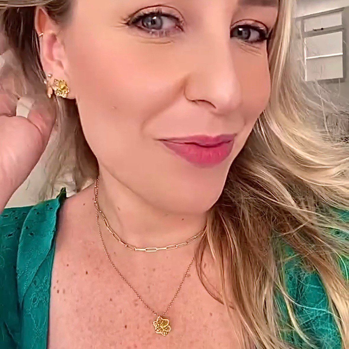 Par de Brincos Flor Diamantada, rendada, 2,5gr no Ouro Amarelo 18k