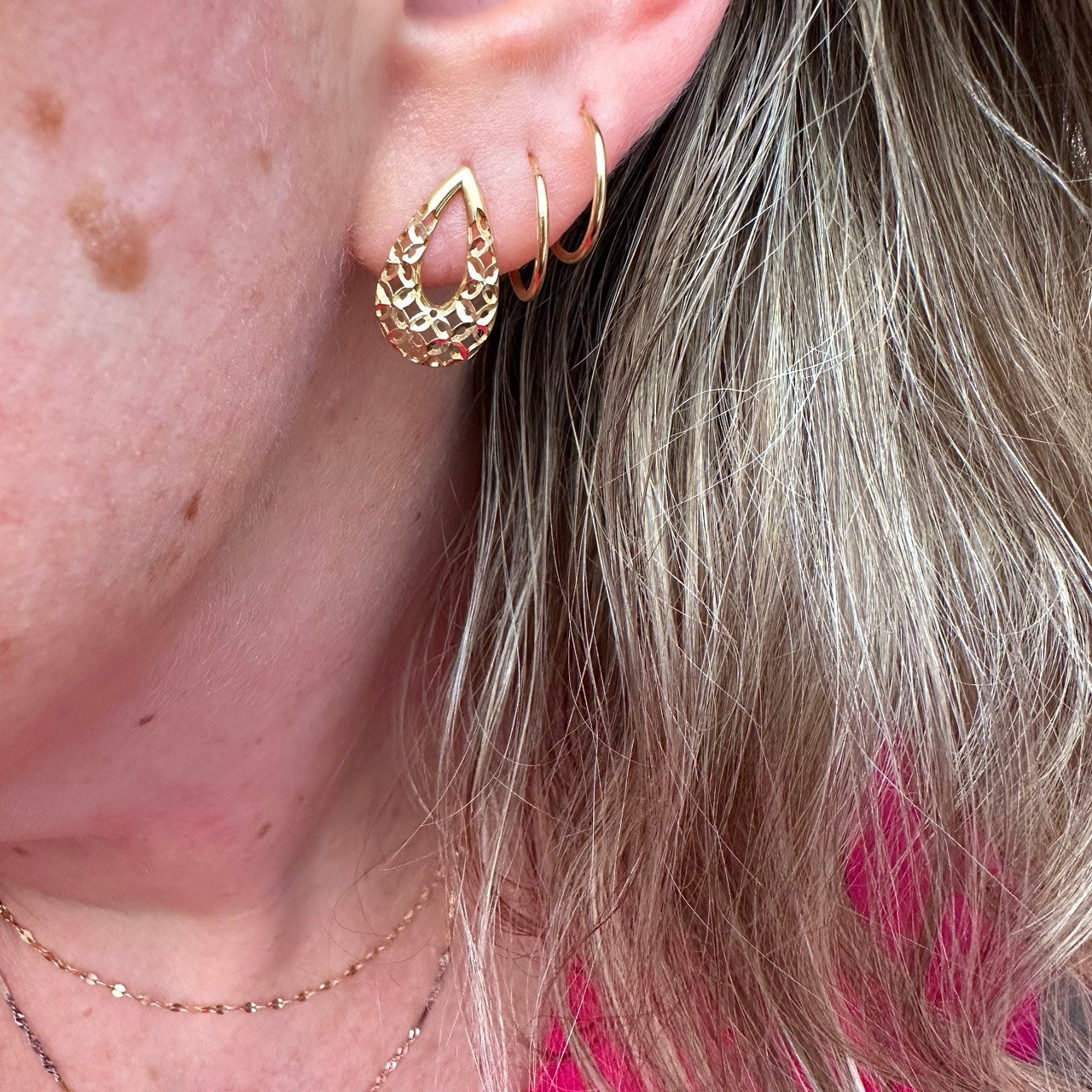 Par de brincos Gota Diamantada, no Ouro Amarelo 18K
