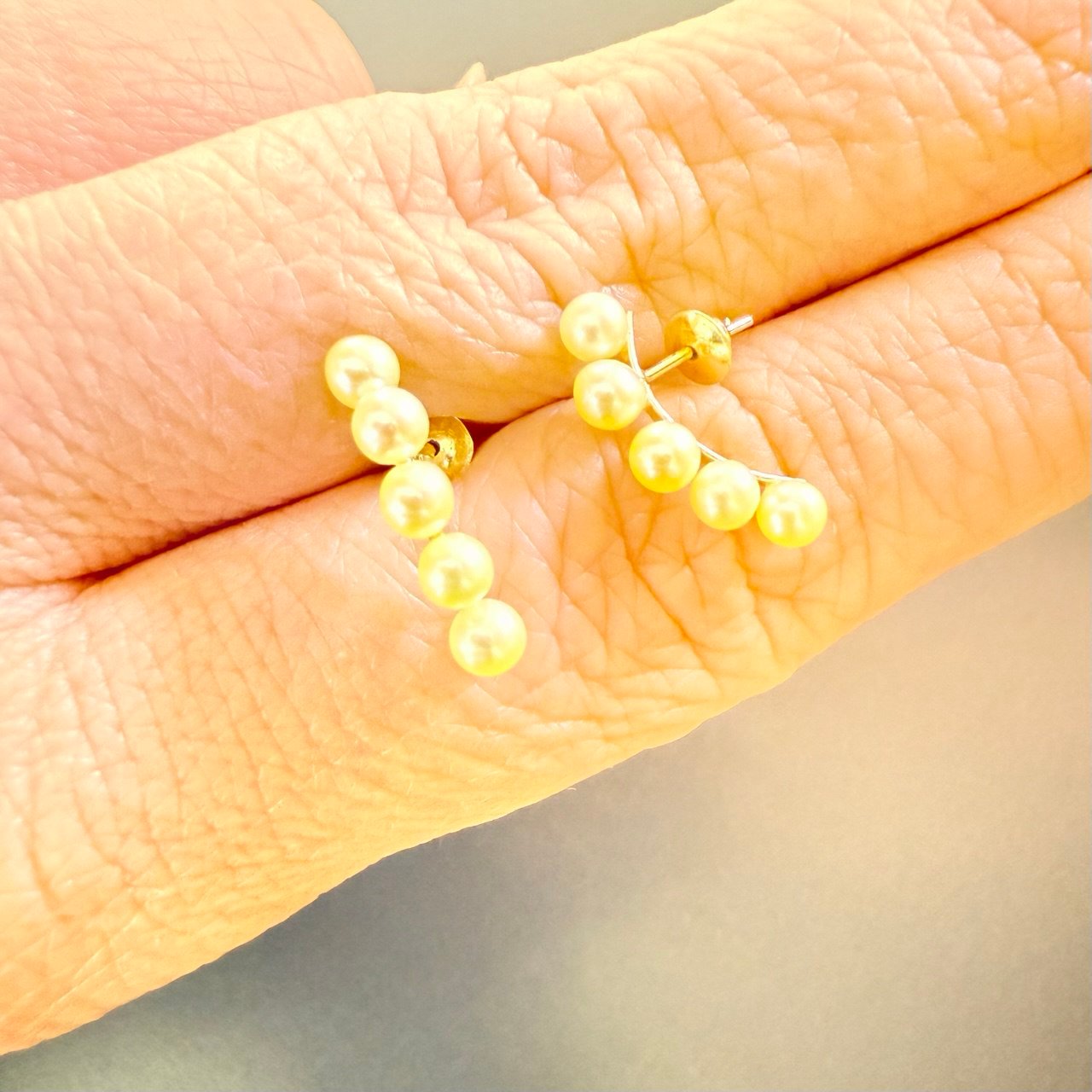 Par de brincos Meia lua de Pérolas naturais, no ouro amarelo 18K.