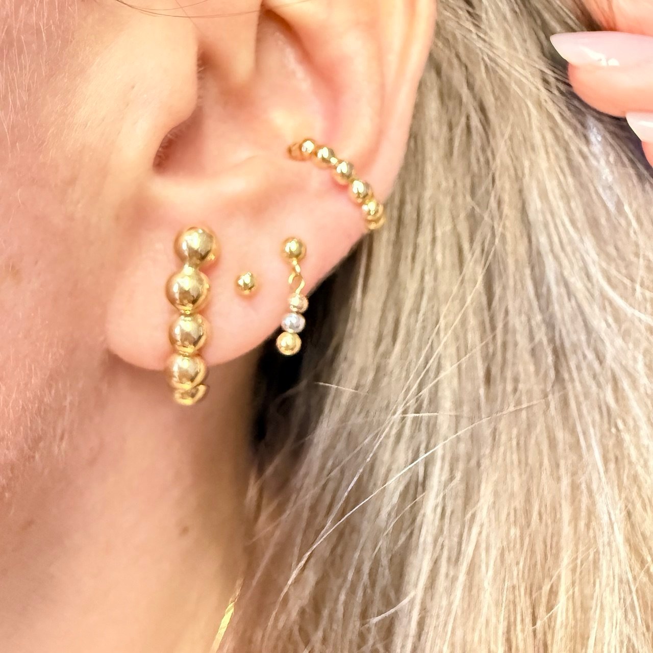 As esferas (bolinhas) são clássicas na joalheria, o que torna esta peça um investimento que nunca sai de moda.