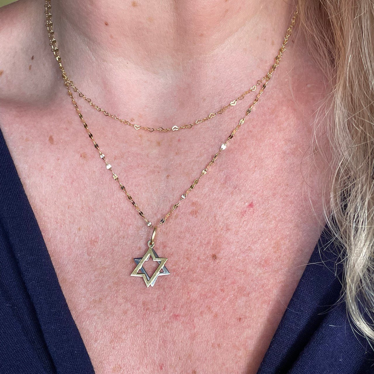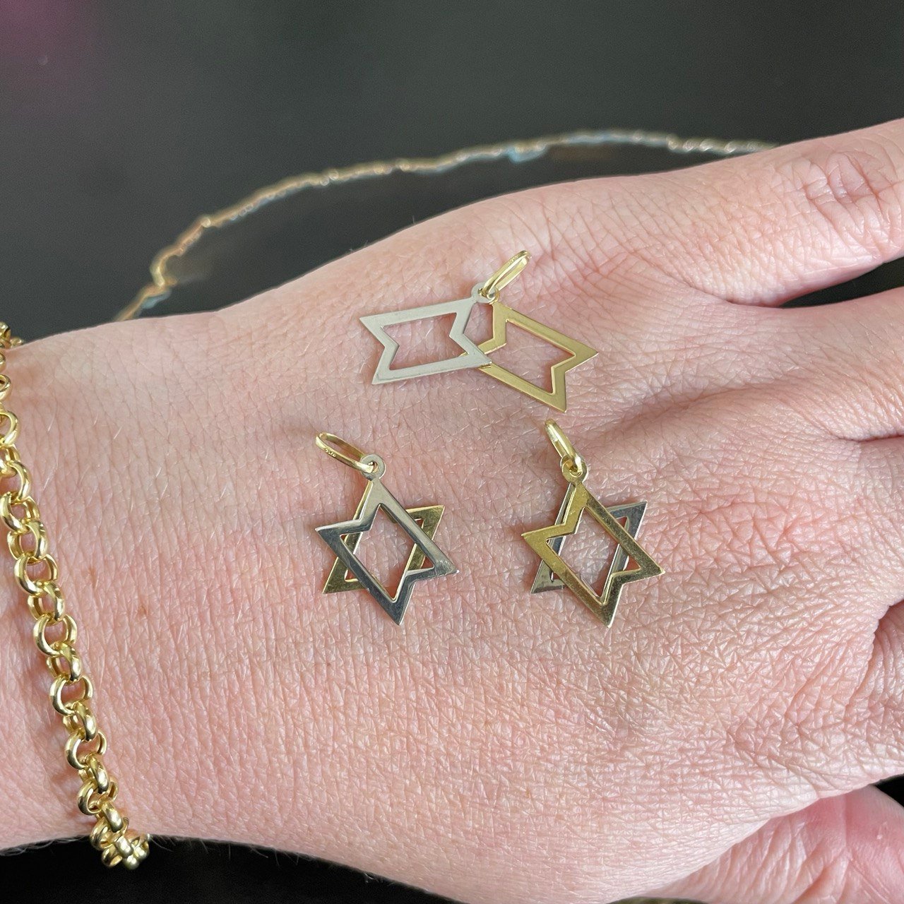 Pingente Estrela de Davi, no ouro Bicolor (amarelo e branco) 18 quilates