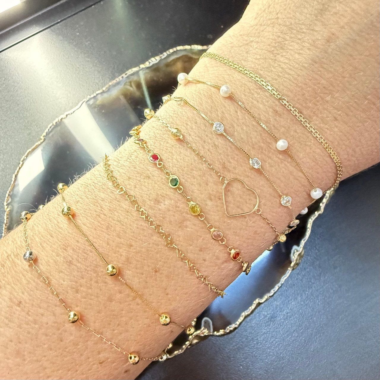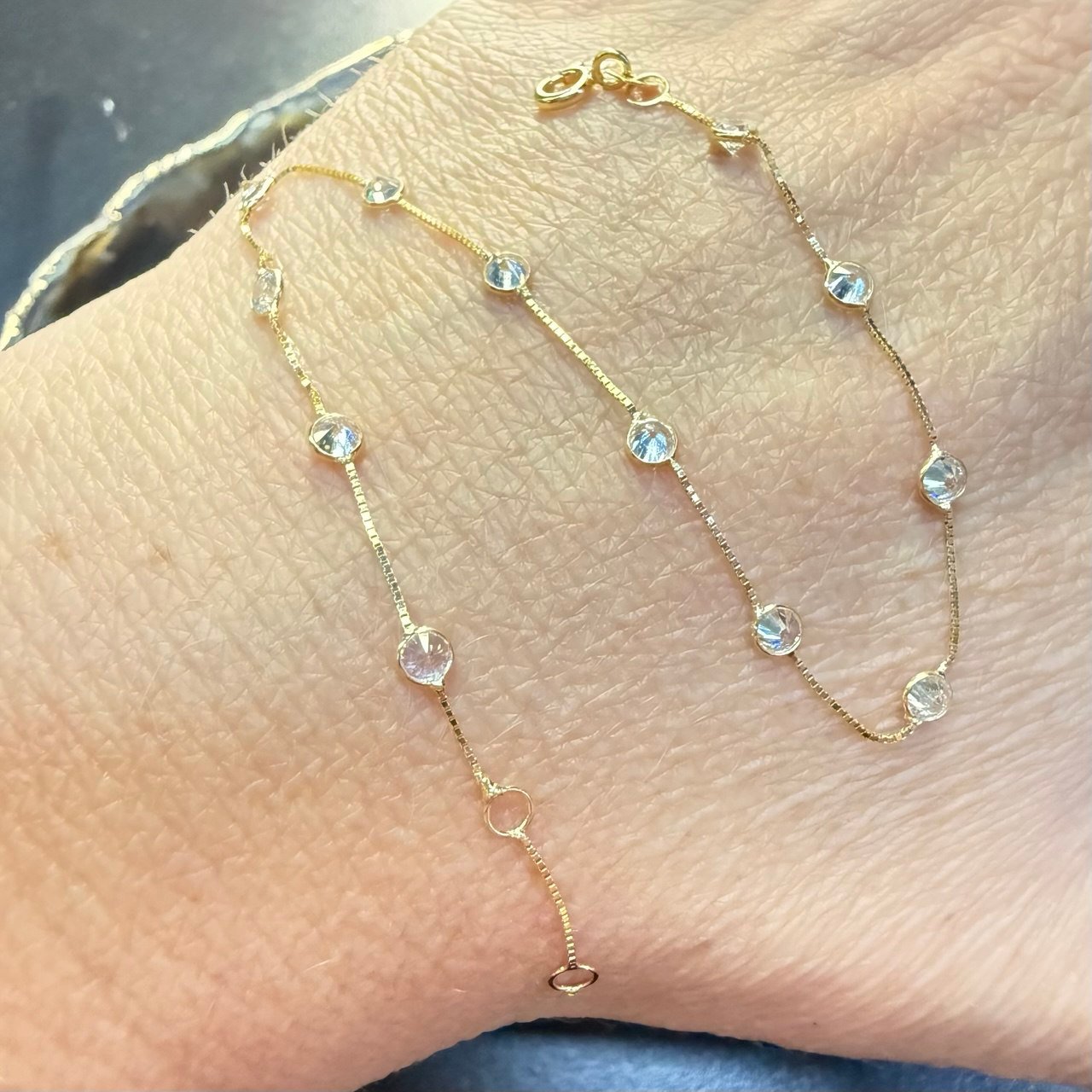 Pulseira com Zircônias brancas, com elo redutor, no ouro amarelo 18K