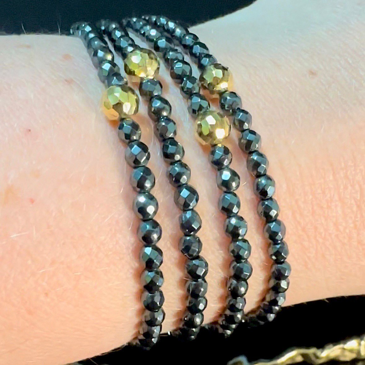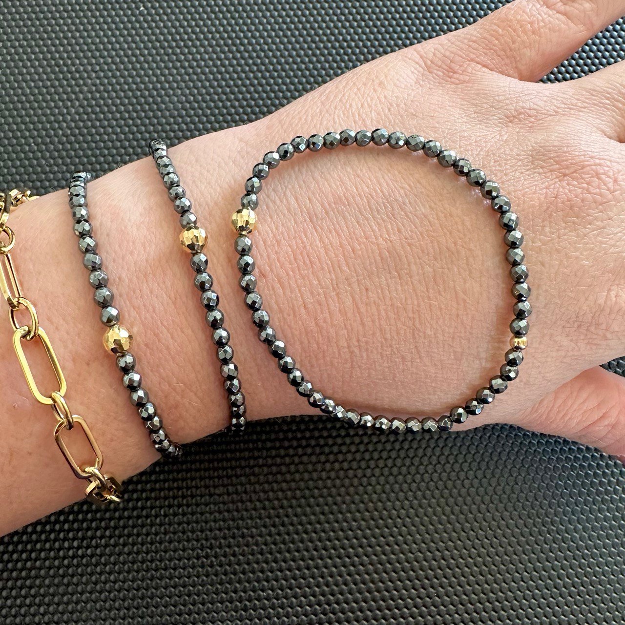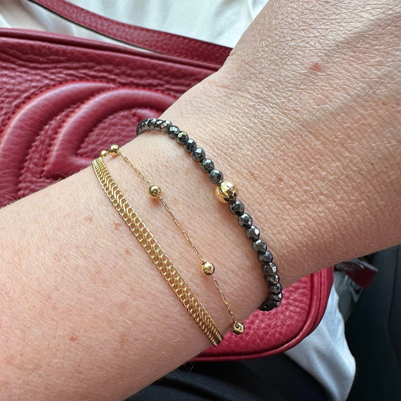 Pulseira Hematitas Naturais, com bola de Ouro Martelado 18kts, 6cm diâmetro