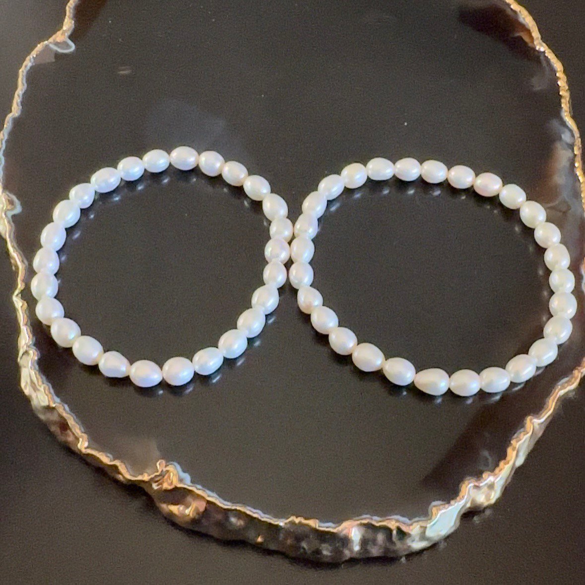 Pulseira Pérolas Biwas, naturais, com aproximadamente 6 cm diâmetro.